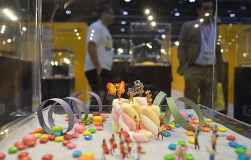 Ele revela que todos os produtos usados nas maquetes são das empresas nacionais que expõem no evento. O artista conta que levou dez horas para montar todas as maquetes, que foram criadas no último sábado, um dia antes da abertura do evento.