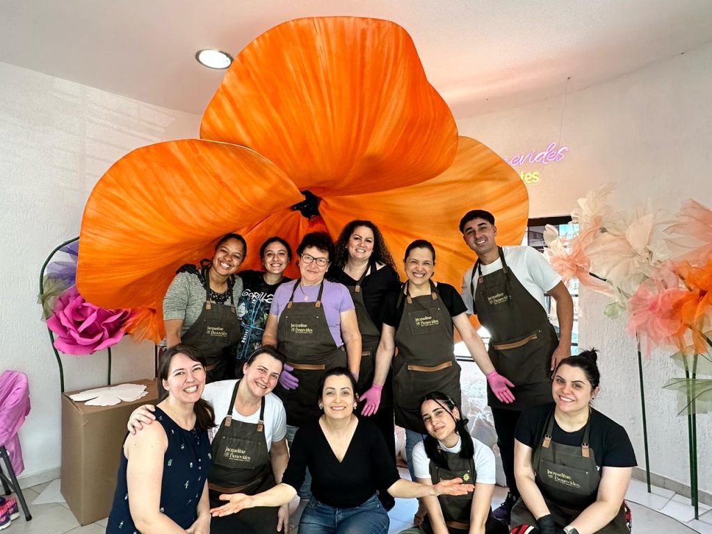 ساو باولو – زارت الفنانة التشكيلية البرازيلية “جاكيليني بينيفيدس” المملكة العربية السعودية في نهاية عام 2023 برفقة فريقها المكون من 10 أشخاص، حيث أوكلت إليها مهمة إنشاء ديكور صالون لحفل زفاف سيقام بحضور ألف سيدة. قامت الفنانة البرازيلية خلال ستة أشهر بإنتاج تسعة آلاف زهرة عملاقة من مادة إيفا (المعروفة أيضاً باسم خلات فينيل الإيثيلين) لتزين بها صالون الحفل.