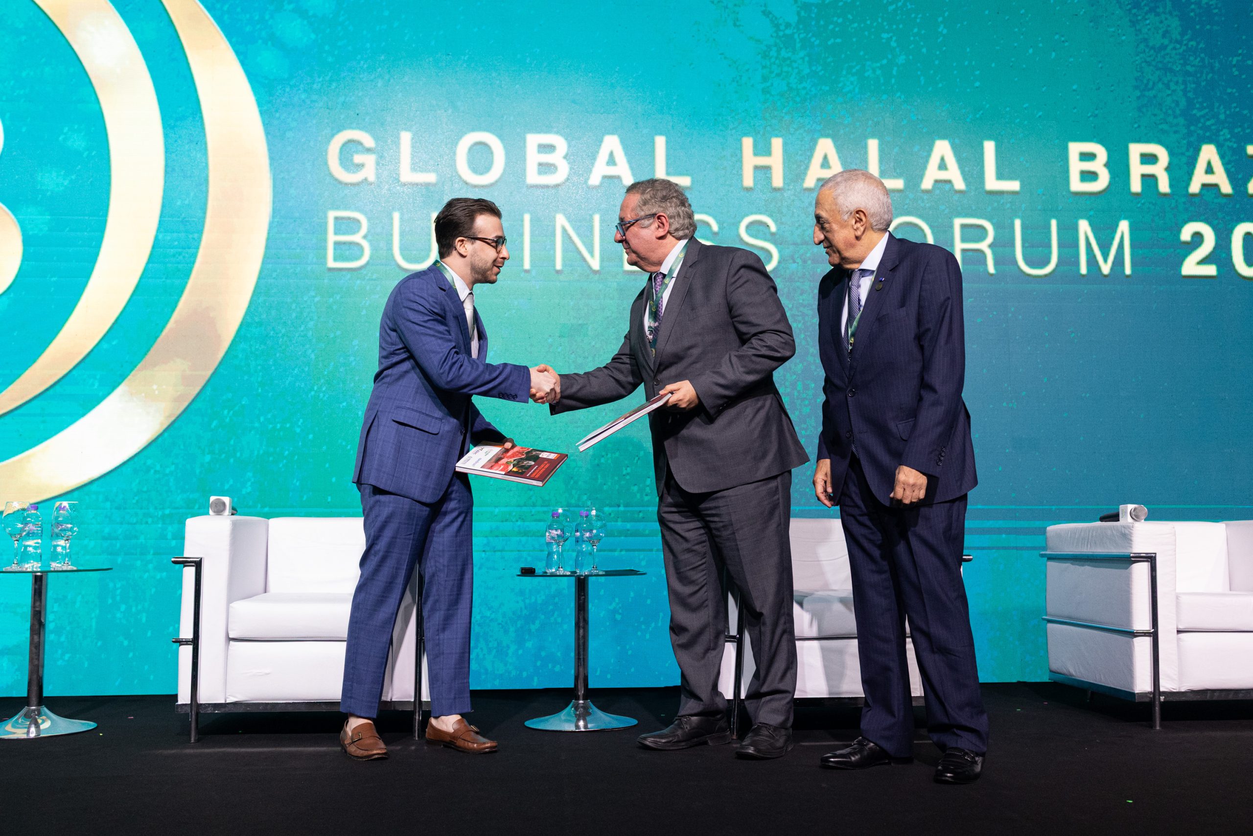 وفي ختام العرض، أهدى ممثل الجمعية (فيان) كل من السيد محمد عبدوني، أمين صندوق الغرفة التجارية العربية البرازيلية والسيد محمد حسين الزغبي، رئيس فامبراس حلال لإصدار الشهادات، نسخة من كتاب “الدليل البرازيلي لقطع لحوم الأبقار”. ويتناول هذا الكتاب مسيرة تطور منظومة الحلال في البرازيل، كما يقدّم تحليلات ورؤى حول سوق المنتجات الوطنية الحلال وتطورها.