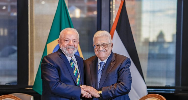 وخلال هذا اللقاء هنأ الرئيس الفلسطيني لولا على الكلمة التي ألقاها خلال افتتاح اجتماع الجمعية العامة للأمم المتحدة. حيث انتقد لولا في خطابه نظام الحوكمة العالمي الذي لم يتمكن حتى الآن من تحقيق حل الدولتين الفلسطينية والإسرائيلية. حيث جاء في كلمته: ” من المزعج أن نرى بأنه ما زال هناك نزاعات قديمة لم تحل بعد ولا تزال قائمة, وأن تهديدات جديدة تنشأ وتكتسب زخماً. ويتجلى ذلك في صعوبة ضمان إقامة دولة للشعب الفلسطيني”.