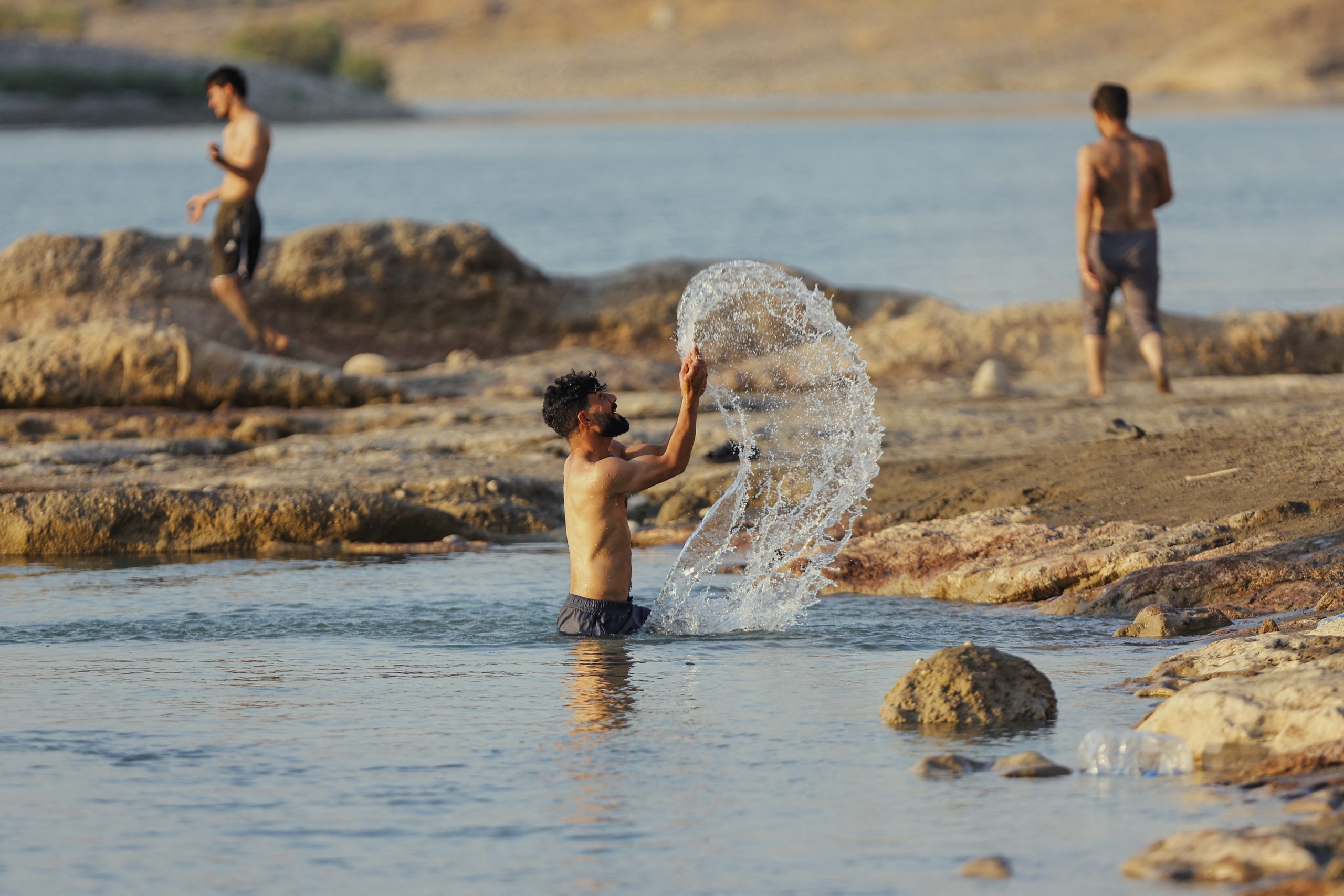 رجل يلعب في مياه النهر العظيم في قرية جمكة في مدينة أربيل في العراق، نهاية الأسبوع الماضي. ووفقاً لمعلومات ©Agence France Presse (AFP)، تمسي ضفاف النهر التي تنعش السكان ملاعباً في الأوقات الحارة والصيفية.