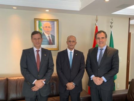 أجرى مسؤولو الغرفة التجارية العربية البرازيلية زيارة رسمية إلى العاصمة برازيليا الأسبوع الفائت، حيث التقوا مع السفير الجديد للجمهورية الإسلامية الموريتانية لدى البرازيل، سعادة أحمد مختار بوسيف ( وسط الصورة)، وقد رحبوا به وعبروا عن تمنياتهم له بالتوفيق في مهامه الدبلوماسية. وقد مثّل الغرفة رئيسها السيد وليام أديب ديب (يسار الصورة)، والسيد محمد مراد، الأمين