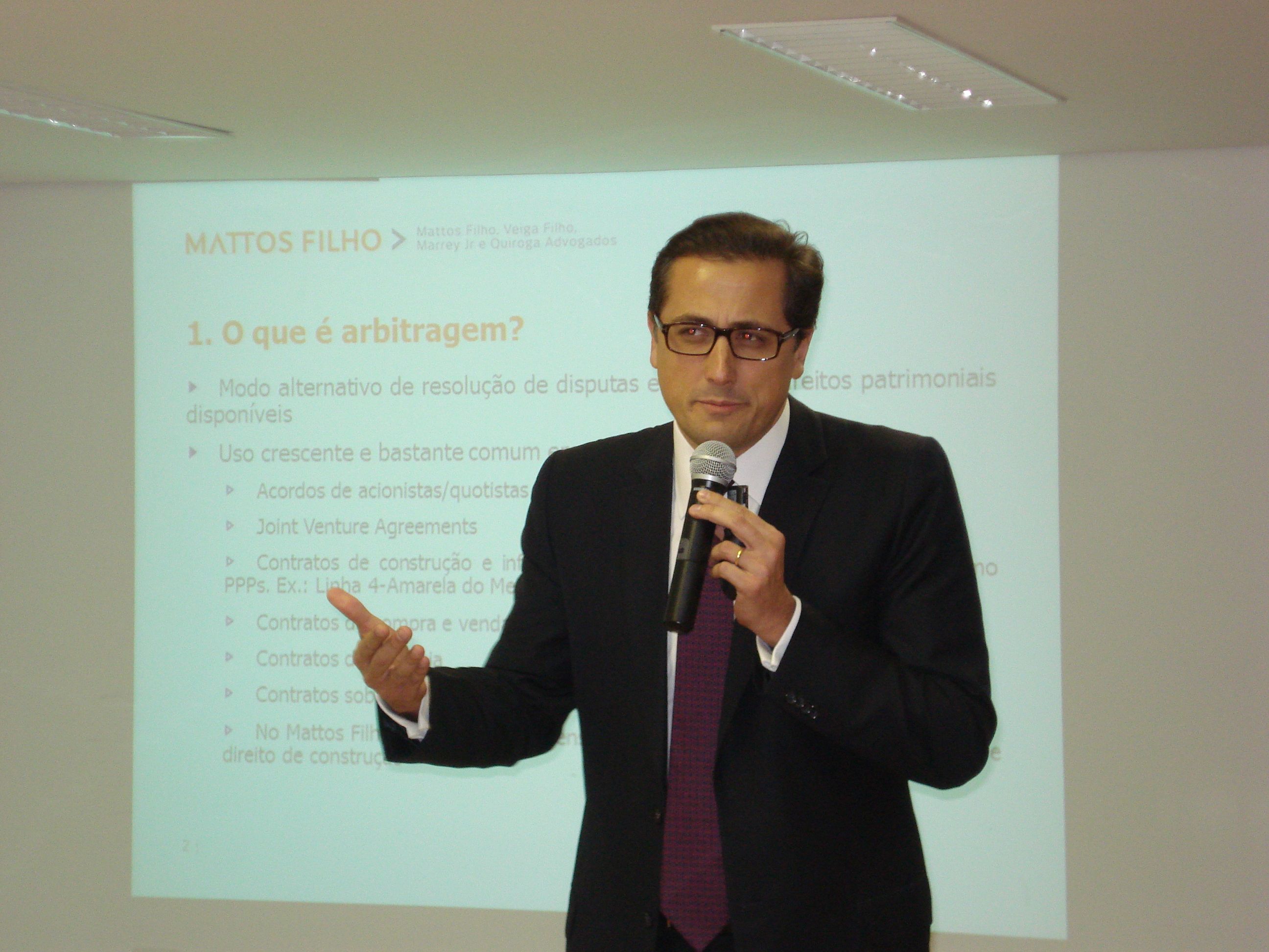 São Paulo – Apesar de não ter resoluções imediatas, a arbitragem costuma ser uma maneira mais rápida de as empresas solucionarem problemas entre si. Esse foi o tom da palestra dada nesta terça-feira (17) pelo advogado Flávio Pereira Lima na sede da Câmara de Comércio Árabe Brasileira, em São Paulo, acompanhada por cerca de 50 pessoas. O especialista na área é sócio do escritório Mattos Filho Advogados e falou sobre as vantagens e desvantagens do uso da arbitragem. De acordo com ele, casos que normalmente se arrastam por dez anos na Justiça levam de um ano a um ano e meio para ter uma solução na arbitragem.
