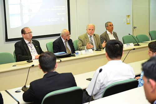 O gerente do Centro Internacional de Negócios da Fieg, Plínio Viana, disse que o seminário teve uma recepção “excelente” por parte do público. Ele ressaltou que, além de goianos, marcaram presença empresários de Mato Grosso e do Pará. “Houve um interesse bastante grande”, afirmou. Compuseram a mesa também o presidente da Fieg, Pedro Alves de Oliveira, e o presidente do Conselho Temático de Comércio Exterior da entidade, Jaime Canedo.