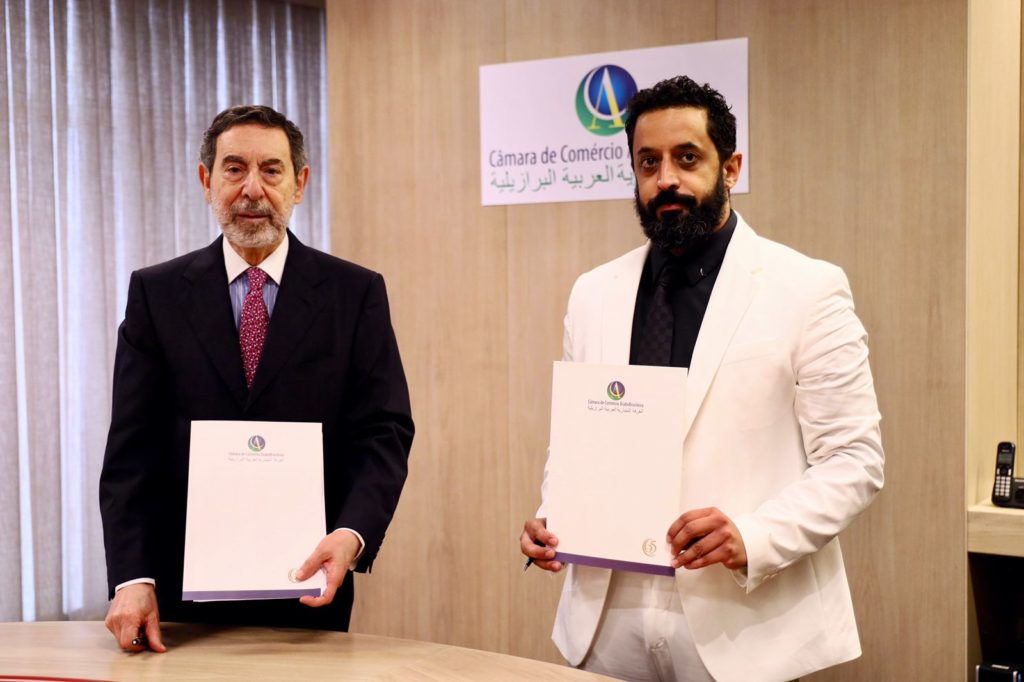 São Paulo – O presidente e CEO da zona franca Dubai Multi Commodities Centre (DMCC), Ahmed Bin Sulayem, e o presidente da Câmara de Comércio Árabe Brasileira, o embaixador Osmar Chohfi, assinaram um memorando de entendimento (MoU) entre as partes nesta sexta-feira (17), na sede da entidade em São Paulo.