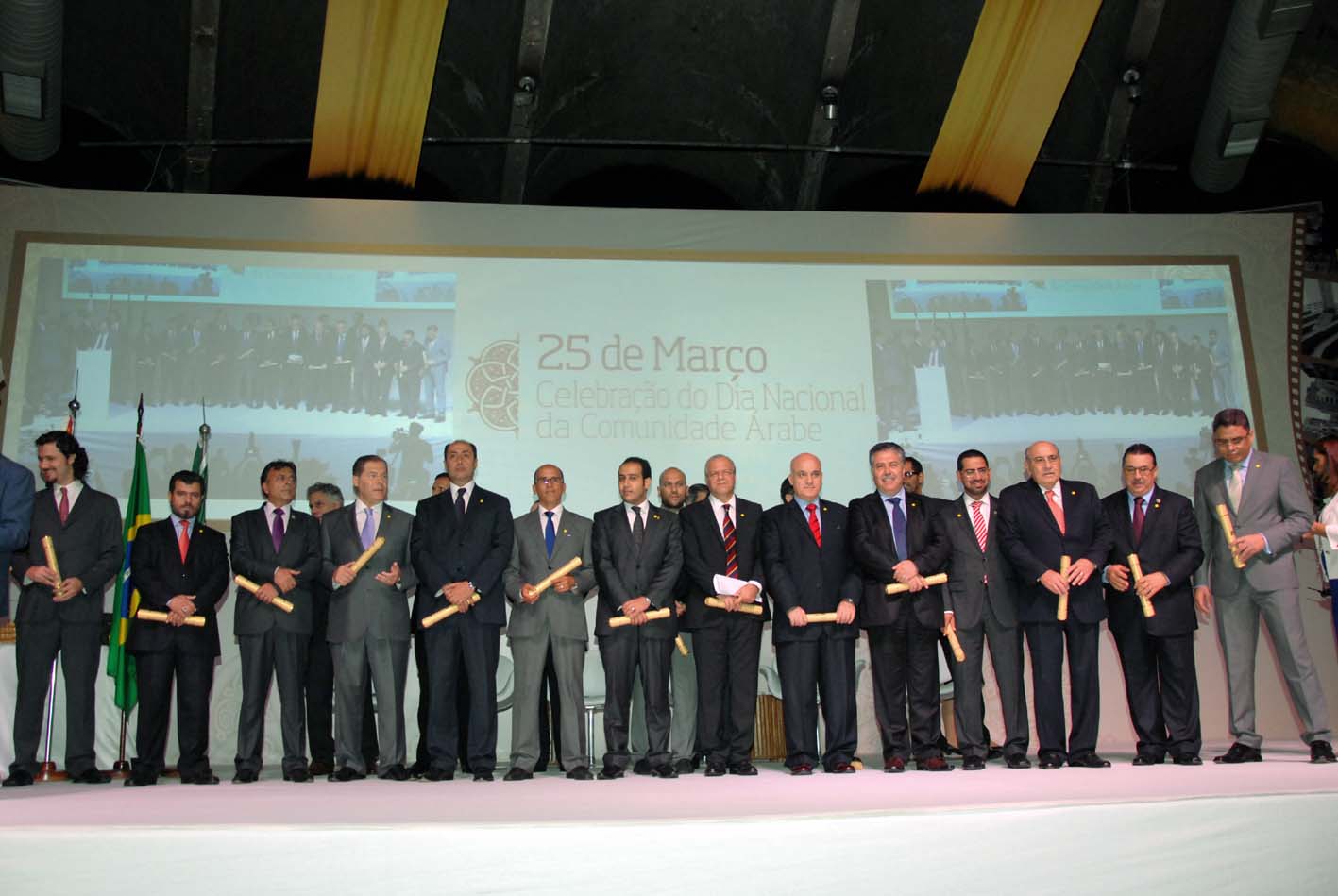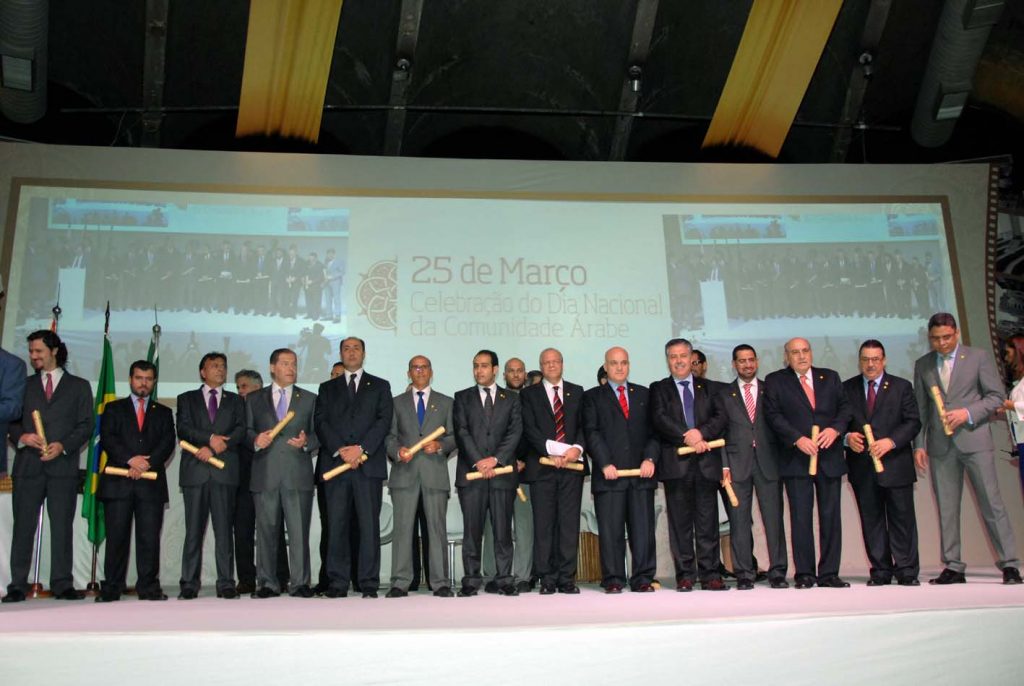 São Paulo – A comemoração do Dia Nacional da Comunidade Árabe promovida pela Câmara de Comércio Árabe Brasileira na noite desta quarta-feira (25), no Esporte Clube Sírio, em São Paulo, teve presença maciça de membros da coletividade, empresários, diplomatas e políticos. A festa foi coroada com a revelação dos vencedores e a entrega dos prêmios do concurso de cinema Os Árabes e a 25 de Março.