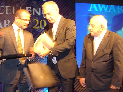 Dubai – A diretoria da Câmara de Comércio Árabe Brasileira participou nesta terça-feira (25) da cerimônia de premiação das melhores empresas de 2013 no setor de comércio internacional e exportações em um jantar organizado pela revista “Trade & Export Middle East” no Hotel Ritz Carlton, em Dubai. O vice-presidente de Comércio Exterior, Rubens Hannun, e o diretor-geral da Câmara Árabe, Michel Alaby, sortearam um prêmio aos participantes do evento.