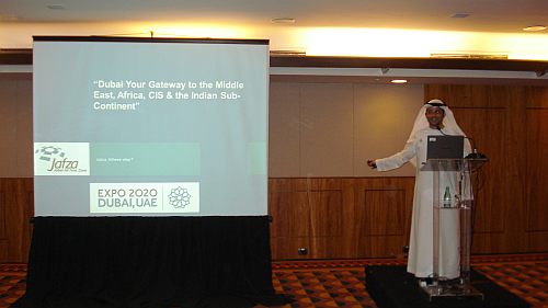 “Dubai é como um grande supermercado, é o supermercado do Oriente Médio”, disse vice-presidente sênior de vendas da Jafza, Adil Al Zarooni, a um público formado por empresários, executivos e consultores, no hotel Renaissance da capital paulista. O evento teve apoio e participação da Câmara de Comércio Árabe Brasileira e da Agência Brasileira de Promoção de Exportações e Investimentos (Apex-Brasil).