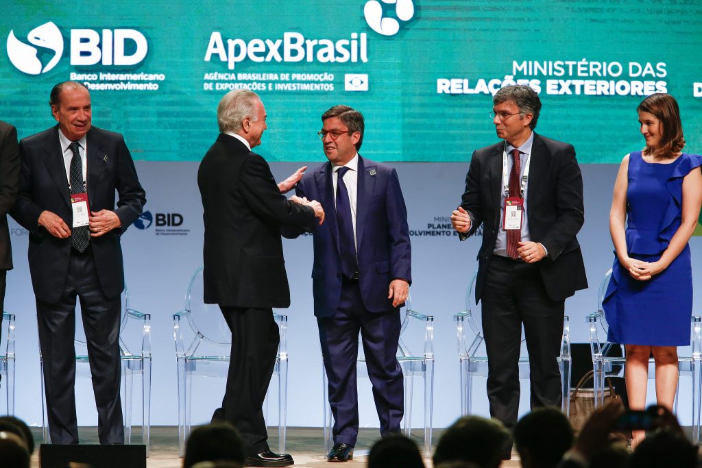 O presidente brasileiro falou na abertura do Fórum de Investimentos Brasil 2018, que teve início na manhã desta terça-feira (29), no World Trade Center, em São Paulo, e do qual participaram outras autoridades (na foto acima) como o ministro das Relações Exteriores, Aloysio Nunes, e o presidente do Banco Interamericano de Desenvolvimento (BID), Luis Alberto Moreno. O evento foi organizado pela Agência Brasileira de Promoção de Exportações e Investimentos (Apex-Brasil).