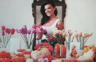 “The Lebanese favor more sophisticated items,” Nakrour explains. In her décor arrangements, she uses items such as flowers, semiprecious stomes, leaves and lots of color. She also makes Islamic-themed décor candles that sell out of a Beirut shop. Nakrour stops working in the hottest months of the year, July, August, and September, since overly hot weather gets in the way of candle-making.