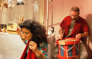 The artist will sing Spanish and Arabic songs that touched her during her adventures around the world. She will also chant in onomatopoeias, with loose syllables and non-traditional words. Mailhac will be accompanied by a percussionist, Yurê Kuhlmann, who will also contribute highly unusual sound effects. Another musician, Alexandre Ribeiro, will play the theorbo, a 16th century string instrument that originated in 1.500 AD in Italy, from the lute, an Arab instrument. The theorba will provide a background to the stories.