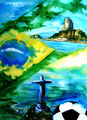 The open-themed show will feature paintings – including a colorful picture by Izolda Landmayer depicting soccer and Rio de Janeiro –, drawings and sculptures – including a horse and a panther sculpted by Marcelo Lima. Another painting is a surrealist take on the Brazilian flag by Sônia Menna Barreto.