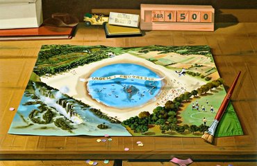 The open-themed show will feature paintings – including a colorful picture by Izolda Landmayer depicting soccer and Rio de Janeiro –, drawings and sculptures – including a horse and a panther sculpted by Marcelo Lima. Another painting is a surrealist take on the Brazilian flag by Sônia Menna Barreto.