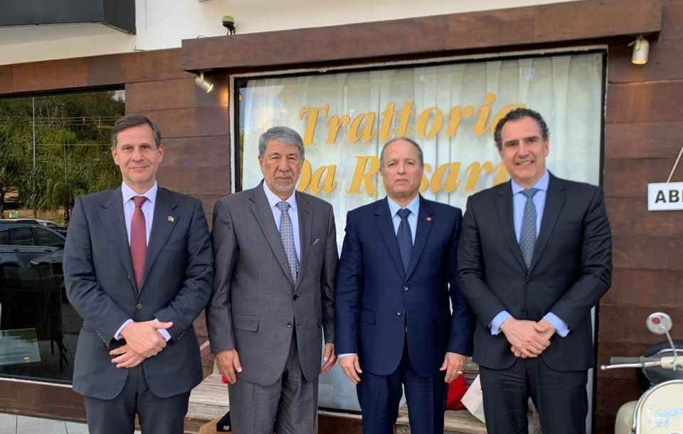 Arab-Brazilian Chamber of Commerce (ABCC) President William Adib Dib Jr. (4th from L to R) and International Relations Vice President & Secretary-General Mohamad Mourad (1st from L to R) were in Brasília to bid farewell to the Tunisian ambassador to Brazil, Nabil Lakhal (3rd from L to R), who is leaving his post. They met with the diplomat along with the Dean of the Council of Arab Ambassadors in Brazil and Palestinian ambassador, Ibrahim Alzeben (2nd from L to R).