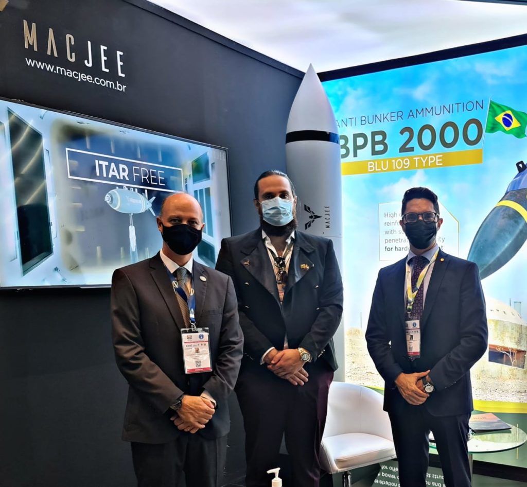 Brazilian companies including Atech, Avibras, Avionics, CBC, Condor, Embraer, Gespi, Kryptus, MacJee, M&K Logistics, Siatt, and Taurus are exhibiting at the space organized by Abimde and Apex-Brasil, with support from the ministries of Defense and Foreign Affairs and the Arab Brazilian Chamber of Commerce (ABCC). “[The exhibition] is a watershed for the defense industry, because it marks a gradual resumption of activity,” a press release quoted Abimde Projects director Paulo Albuquerque (pictured above, on the left) as saying.