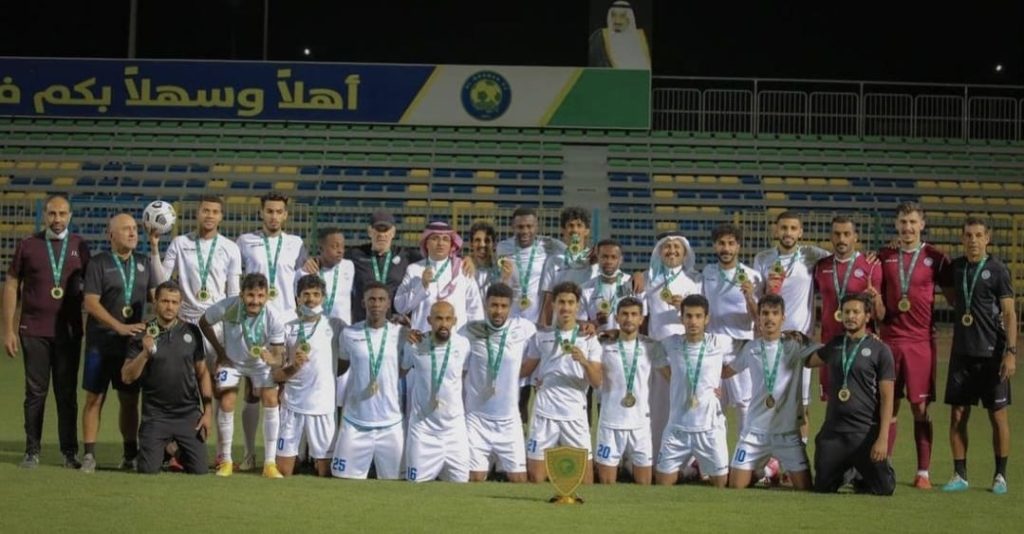The second division championship, coach Zaluar said, is divided into two groups of 14 teams each. In its group, Al Okhdood became a champion on April 9. The 1st and 2nd place of each group got into the first division.