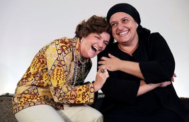 The play opens with the two actresses serving kibbeh to the audience. It’s a wake. “And people eat a lot at wakes,” Kalil explains, stressing the symbolism involved: “To give food is to give love and tenderness.” But the kibbeh runs out, and Ester and Marion find themselves having to make more.