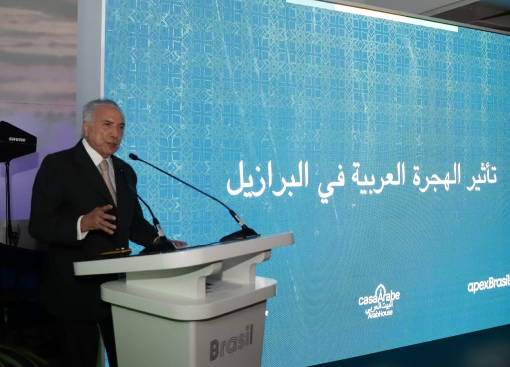 Son of Lebanese parents, Temer told of his experiences in the Arab world, bringing the reality of a man of Arab descent who conquered a notorious space in Brazilian society and politics closer to the participants. He was president of Brazil between August 2016 and January 2019, during which time he made several incursions to strengthen ties with the Arab world. In 2020, he headed a mission with humanitarian aid from Brazil to Lebanon when the Arab country suffered an explosion in the Port of Beirut.
