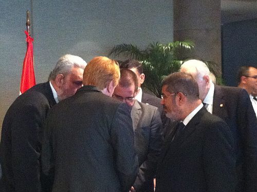 During his visit to São Paulo, the Egyptian leader also met with representatives of large companies, among them executives of Brasil Foods (BRF), JBS, Marcopolo, in the bus sector, which has a factory in Egypt, with the executive vice president for People, Institutional Affairs and Sustainability at Embraer, Jackson Schneider, and with the president of Coteminas, Josué Gomes da Silva. On Wednesday, in Brasília, Morsi discussed cooperation in aviation and defence with president Dilma Rousseff.