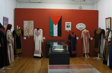 The show also features a picture painted by a Colombian artist, showing Jerusalem’s Old City; a picture of the Last Supper; photos of knit caps and hats worn in weddings; a Bible and a Quran inlaid with mother-of-pearl from Bethlehem; ceramic items from Hebron; bronze trays and jars; and the keys to the homes of people who were forced to leave Palestine.