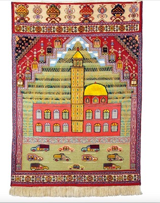 Kuwait’s Alia Farid, who lives in Kuwait City and Puerto Rico, created a set of tapestry pieces in partnership with Jesus ‘Bubu’ Negrón. The duo submitted pictures of mosques in Puerto Rico and the Dominican Republic, in Central America, to Iranian weavers who created tapestry to mimic the photos. The pieces deal with the tensions bred by contemporary culture and migration flows, and their role in conveying signs, emblems and habits.