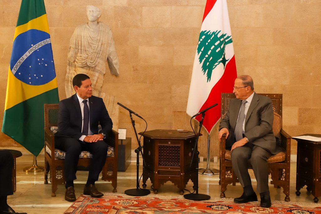 São Paulo – The vice president of Brazil, Hamilton Mourão, was welcomed by the president of Lebanon, Michel Aoun, Friday (17) in Beirut. He pledged o support the Arab country in entering into a free trade agreement with the Mercosur. The information was made public on the Aoun’s official Facebook page.
