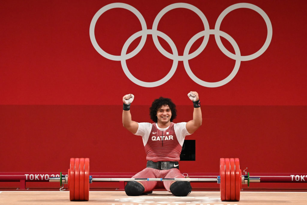 Athlete Fares Ibrahim (pictured above), 23 years old, won the first-ever gold for Qatar, in weightlifting, in the 96 kg category. He managed to lift a total of 402 kg (177 kg snatch and 225kg clean & jerk), a new Olympic record.