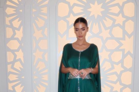 The Brazilian designer, who has an established brand in the Middle East, developed a collection for the sacred period of Islam. The connection between Ramadan and the night is one of the themes, as Muslims fast during the day and gather to break their fast at dusk.