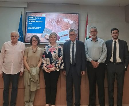 The professor of Contemporary Arab History and director of the Palestinian Studies Center at the University of São Paulo (USP), Arlene Clemesha, gave a lecture on Thursday (2) about the Middle Eastern diaspora in South America at the Holy Spirit University of Kaslik (USEK) in Lebanon. The lecture was part of a program organized by