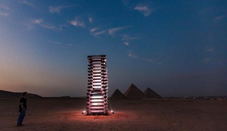 Visual artist João Trevisan was selected to participate in the exhibition ‘Forever is Now,’ with the sculpture entitled “The body that rises.” The exhibition is taking place in the surroundings of the Giza Pyramids.