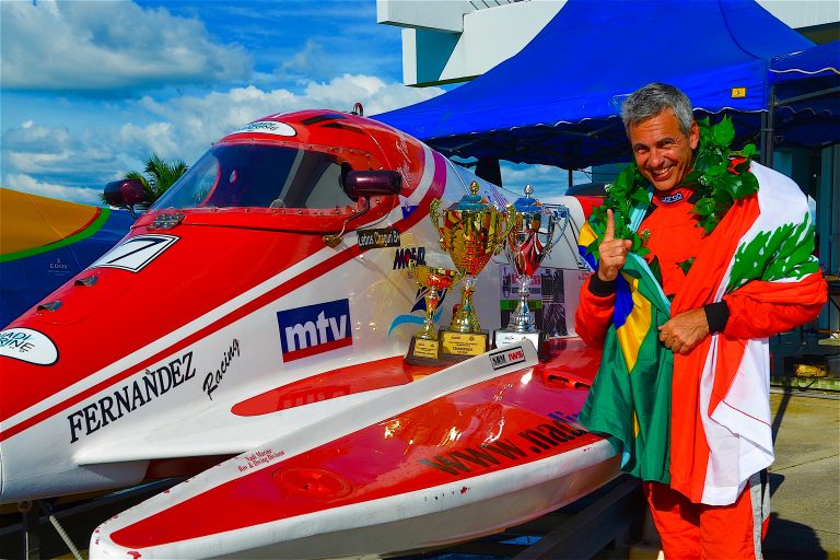 Racing at 200kpm, the pilot Lebos Ribeiro Chaguri wins 2018 edition of the F3000 Powerboat World Championship in Malaysia.