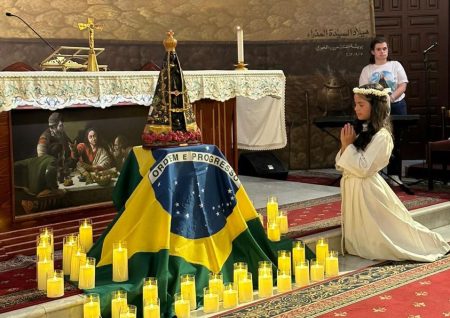 Lebanon-based Brazil Friendship Group in the Middle East held its annual Mass last Saturday (11) in honor of Our Lady of Aparecida, the Patroness of Brazil, for the Brazilian Christian community residing in the Arab country. The ten-year-old traditional celebration was conducted in Portuguese by Father Antônio Sadak at the Saydet El Najat Church in