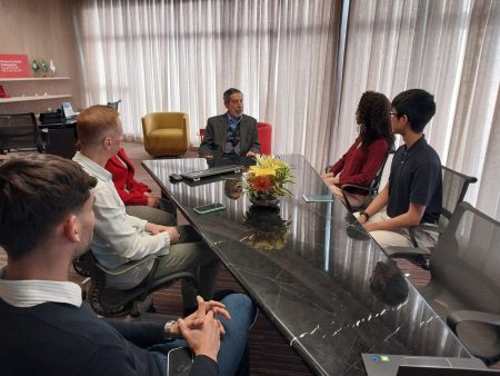 Two students from private high schools in São Paulo visited the head office of the Arab-Brazilian Chamber of Commerce on Tuesday (16) to know more about its work in international relations. They are part of vocational program Guide-U.