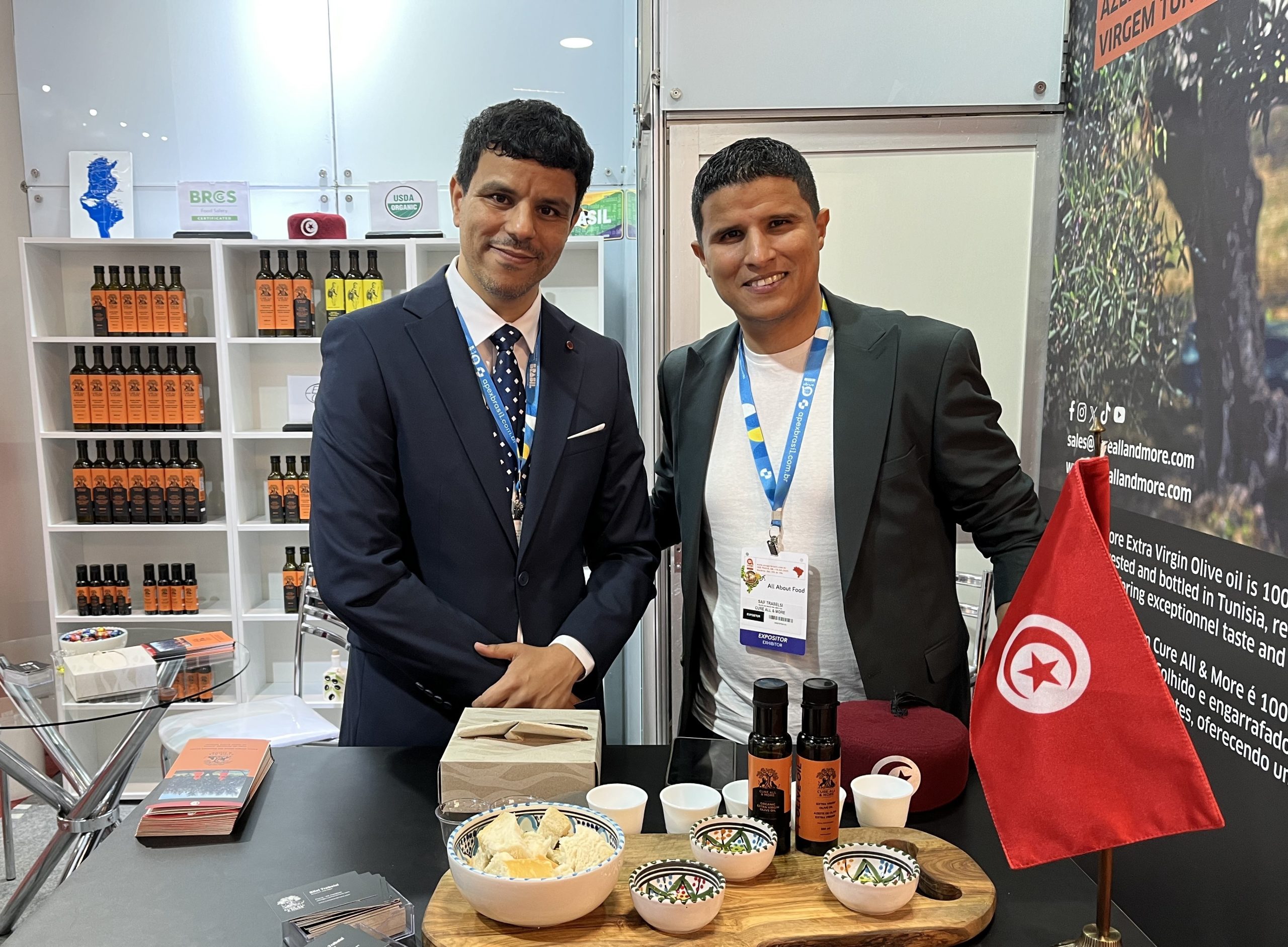 São Paulo – By relying on the ancestral tradition of production and manual harvesting, Tunisian olive oil manufacturer Cure All & More aims to carve out its space in the Brazilian market. General Director Yassine Trabelsi and his two brothers, Marketing and Sales Director Saif Elislam Trabelsi, and Accounts Manager Bilel Trabelsi, are attending the Anuga Select Brazil fair in São Paulo from April 8 to 10 to showcase the unique qualities of their two olive oil brands compared to the competition.
