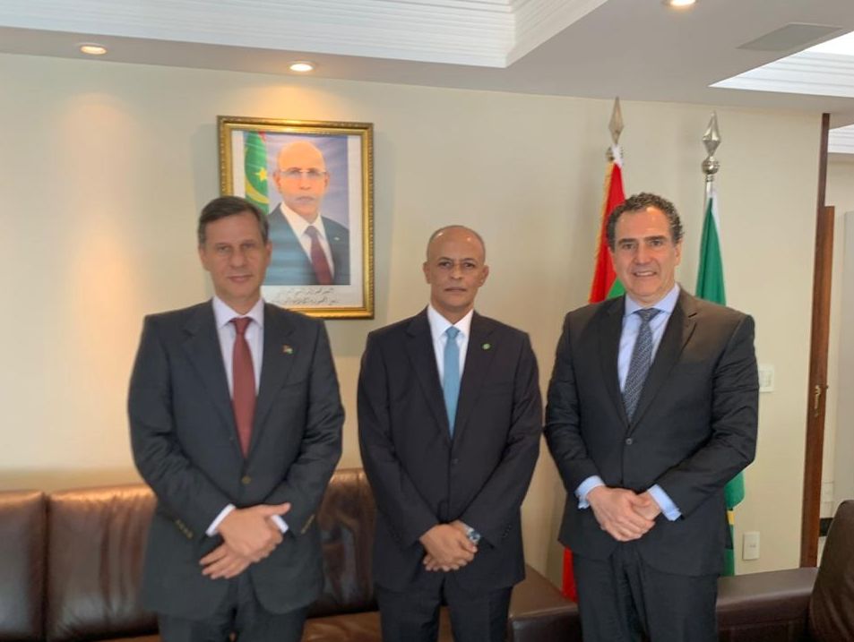 Lideranças da Câmara de Comércio Árabe Brasileira estiveram em Brasília na última semana e se reuniram com o novo embaixador da Mauritânia no Brasil, Ahmed Moctar Bouceif (na foto, ao centro), ao qual deram as boas-vindas. Tiveram encontro com o diplomata o presidente da Câmara Árabe, William Abid Dib Junior (esq.), e o vice-presidente de Relações Internacionais e secretário-geral, Mohamad Mourad (dir.).