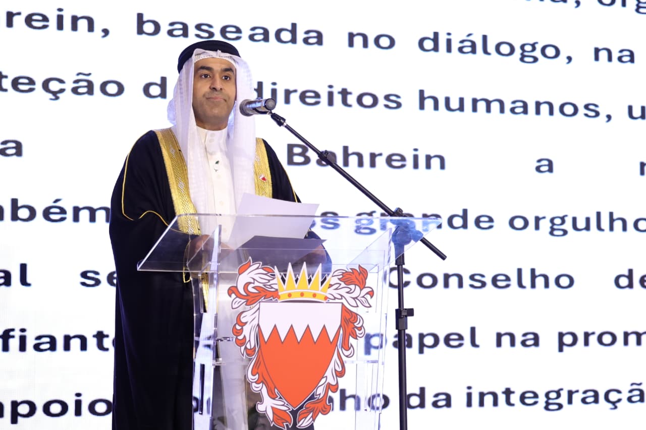 O Embaixador do Bahrein no Brasil, Bader Abbas Alhelaibi (foto), recebeu os convidados, como personalidades de várias nacionalidade e autoridades. Em discurso, Alhelaibi destacou a política externa do Bahrein e disse que ela é baseada em diálogo, paz, cooperação internacional e proteção dos direitos humanos. A Câmara de Comércio Árabe Brasileira foi representada pelo tesoureiro Mohamad Abdouni Neto.
