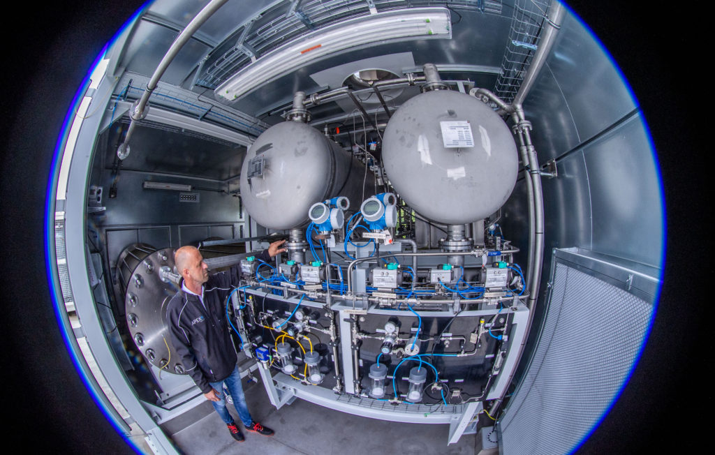 O hidrogênio como fonte de energia pode ser extraído de diversas formas, como a partir da produção de amônia, por meio do sequestro de gases causadores do efeito estufa e por meio da dissociação, da separação das moléculas de hidrogênio (H2) da molécula de oxigênio (O), formadoras da água. Na foto acima, planta de hidrogênio verde na Europa.