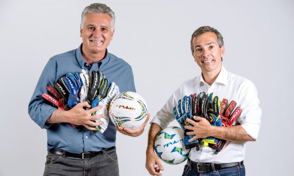 A partir de 2006, a empresa passou a investir no setor profissional do esporte. “Com planejamento estratégico, vimos que era o momento de a empresa entrar no mercado profissional. E mais, vimos que o nicho de goleiro estava desassistido”, explicou Rogério Cauduro, diretor da empresa, responsável pelo comércio exterior e marketing da Poker. Na foto, Rogério (à direita) e seu irmão e co-fundador da Poker, Frêdi Cauduro.