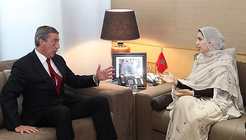 A secretária responsável pela área de Comércio Exterior da pasta (dir. na foto acima) se reuniu com o presidente do Parlamento do Mercosul (Parlasul), o paraguaio Tomás Bittar Navarro (esq. na foto), que está em visita ao Marrocos. O país árabe e o bloco sul-americano negociam um acordo de livre comércio. De acordo com a MAP, Derham afirmou que o Marrocos está empenhado no desenvolvimento de uma nova parceria econômica com o grupo que reúne Argentina, Brasil, Paraguai e Uruguai. A Venezuela está temporariamente suspensa do Mercosul, e a Bolívia, em processo de adesão.