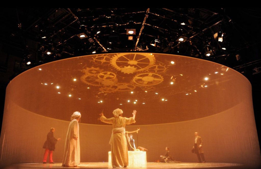 “Esse projeto nasceu de uma ideia simples, com os atores e técnicos jogando cartas. Daí, Lepage foi pesquisar a origem dos jogos e descobriu que eles nasceram no Oriente, no mundo árabe. A partir disso, ele começou a se voltar para esse universo”, explica Emerson Pirola, assistente da área de teatro da gerência de Ação Cultural do Sesc.