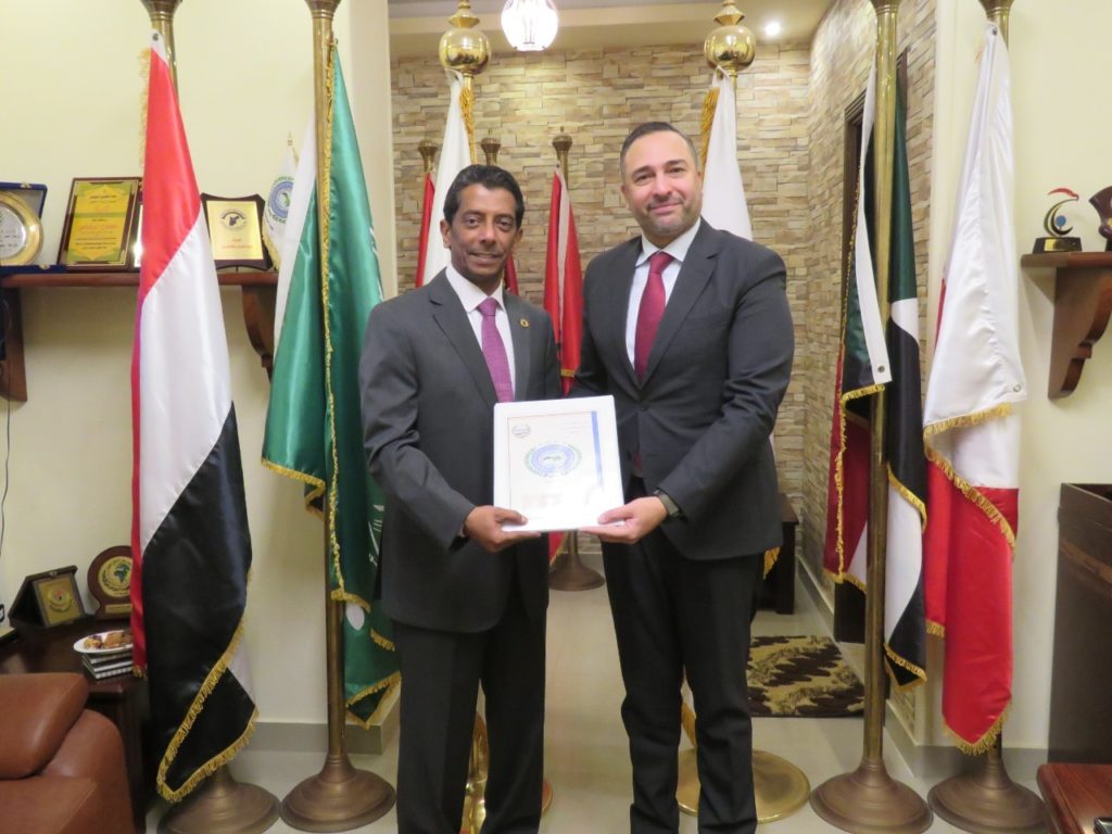 Cairo – Lideranças da Câmara de Comércio Árabe Brasileira e da União Árabe dos Despachantes Aduaneiros discutiram nesta semana, no Cairo, Egito, uma cooperação. Em passagem pela capital egípcia, o secretário-geral da Câmara Árabe, Tamer Mansour, teve encontro com o presidente da União, Mamdouh Al-Rifai (foto acima). A reunião contou ainda com a presença do diretor regional e chefe do escritório da Câmara Árabe no Cairo, Michael Gamal, e da diretora das Relações Internacionais da entidade no Egito, Rania Mohamed Hagrass, além de outros executivos.