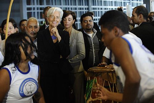 No Rio de Janeiro, a diretora-geral do Fundo Monetário Internacional (FMI), Christine Lagarde, defendeu a disciplina fiscal como instrumento para garantir programas sociais no Brasil. Ela visitou nesta quinta-feira o Teleférico do Alemão, na zona norte do Rio, acompanhada da ministra do Desenvolvimento Social e Combate à Fome, Tereza Campello.