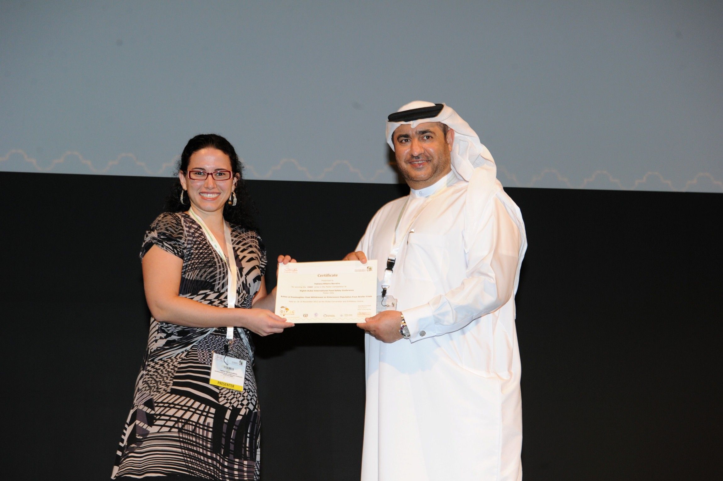 Após terminar os experimentos no Brasil, Barreiro ficou sabendo do evento em Dubai e decidiu se inscrever. Ela viajou aos Emirados acompanhada de Artoni. Lá, expuseram cinco pôsteres com diferentes partes da pesquisa. Dois deles foram premiados.