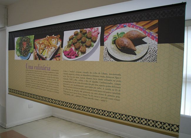 Os painéis foram escolhidos de forma que pudessem mostras algumas características dos imigrantes. Assim, há imagens que relacionam a presença dos sírios e libaneses ao processo de imigração e sua chegada a São Paulo, à culinária, ao comércio e ao lazer.