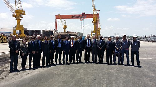 Ainda no complexo, os embaixadores visitaram o estaleiro Atlântico Sul, que constrói navios petroleiros para a Petrobras. O gestor de projetos Rodrigo Fanton informou que as operações começaram em 2007 e que a empresa tem em seu portfólio encomendas de 20 embarcações de grande porte a serem concluídas até 2020, sendo que seis já foram entregues.